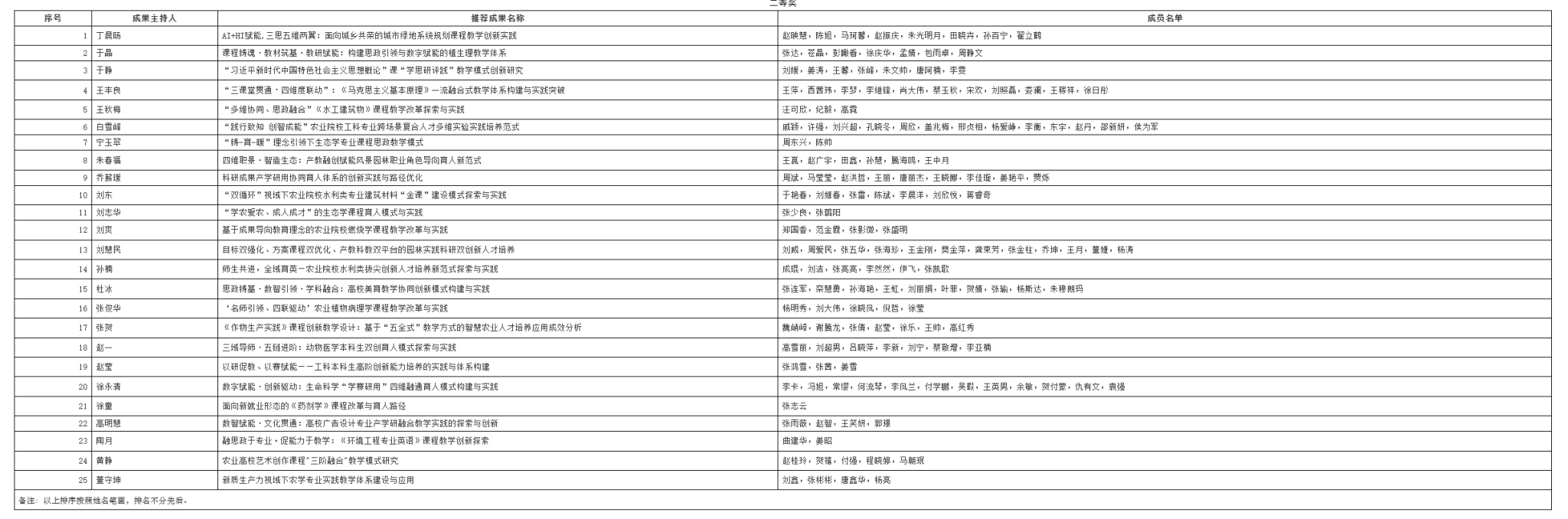 根据黑龙江省教育厅《关于开展2025年黑龙江省高等教育教学成果奖评审工作的通知》及《关于开展2025年度校级教学成果奖(本科)评选工作的通知》要求,学校组织专家对各单位申报的教学成果进行评审,共评选出校级教学成果一等奖15项,二等奖25项。其中,我院教师宁玉翠、刘志华、陶月获得二等奖。