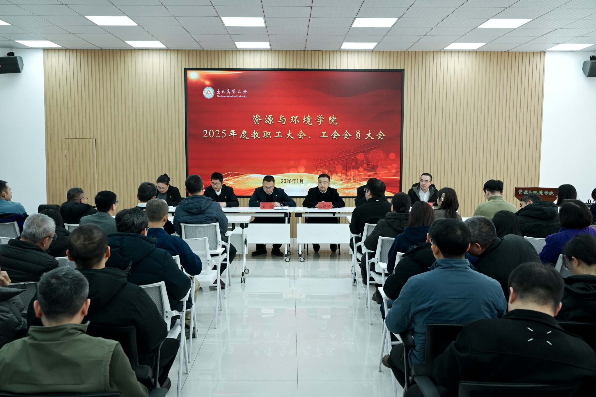 1月7日,资源与环境学院于研究生楼741会议室召开2025年度教职工大会、工会会员大会。学院领导班子、全体教职工参加会议。会议由学院党委副书记兼工会主席袁洪波主持。