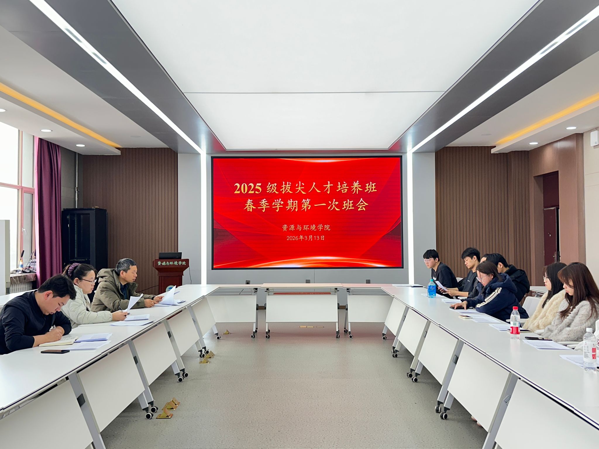 为深入落实立德树人根本任务,扎实推进我院拔尖创新人才培养工作,精准解决学生在学习、生活中的实际问题,引导学生科学规划春季学期学业发展与科研成长路径,资源与环境学院于3月13日召开2025级拔尖人才培养班春季学期第一次班会。院长助理(本科教学负责人)宁玉翠、农资2581班班主任李鹏飞、辅导员朱凤博及25级拔尖人才培养班全体学生参会。会议由宁玉翠主持。