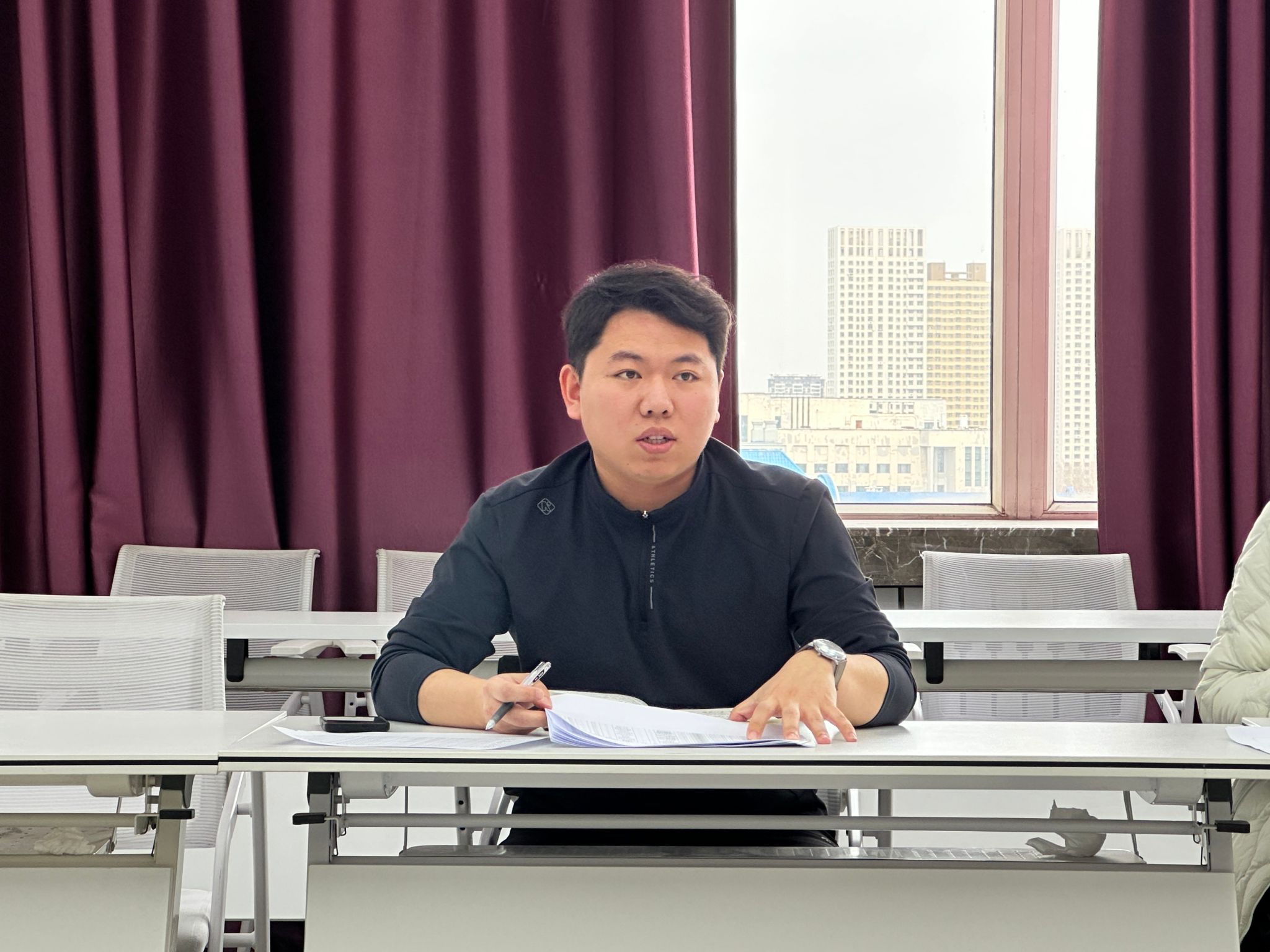 宁玉翠首先对同学们上学期的学业成绩进行分析,全面梳理了同学们的学业优势与待提升方面。交流环节,同学们围绕课程学习难点、课堂听课效率、教学计划安排等方面坦诚交流困惑与诉求,宁玉翠针对学生提出的问题逐一细致解答,重点回应了课程进度、论文要求与体测安排等学生关切的核心问题,并明确表示将根据同学们的实际诉求对相关安排进行优化调整,切实保障学生学习质效。