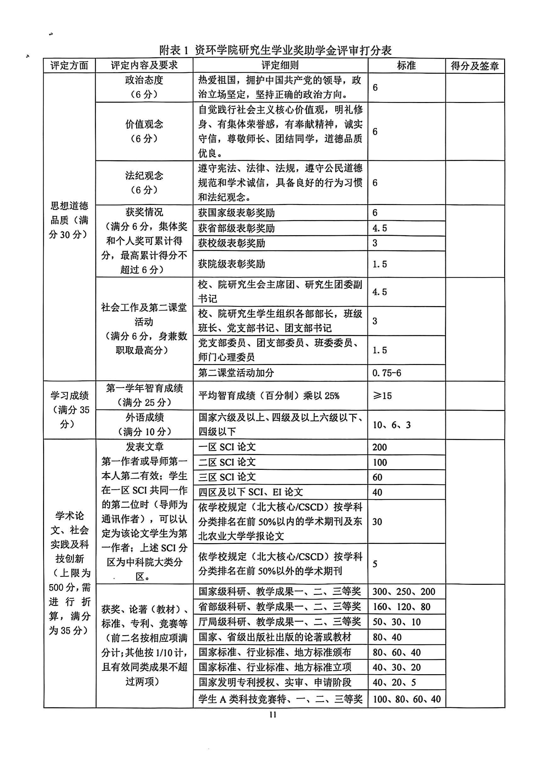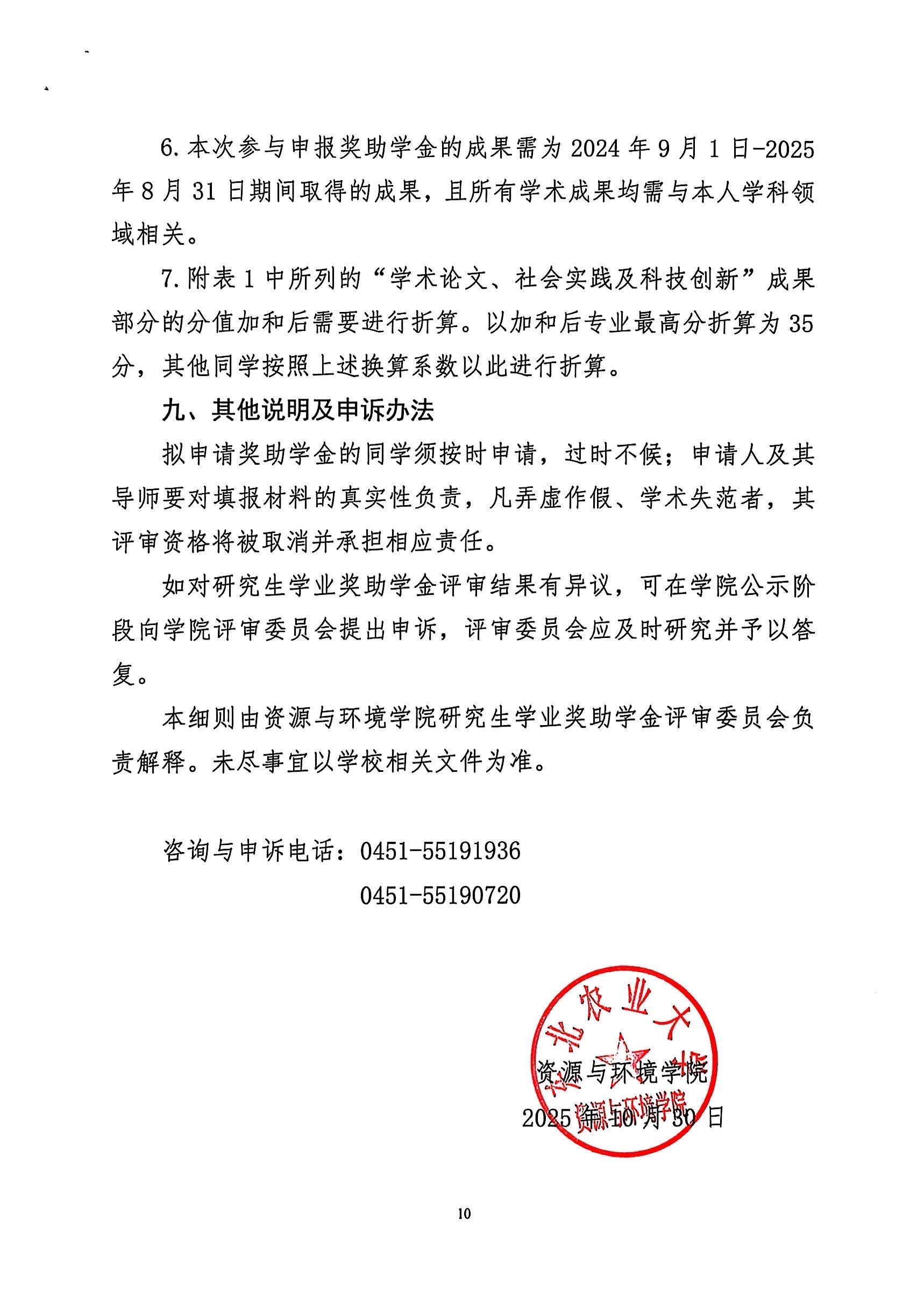 资源与环境学院2025年研究生学业奖助学金评审工作实施细则