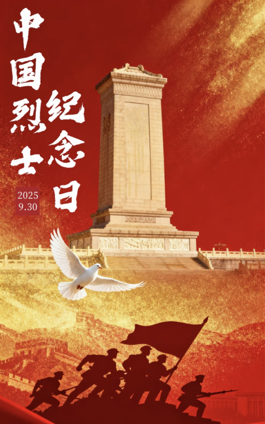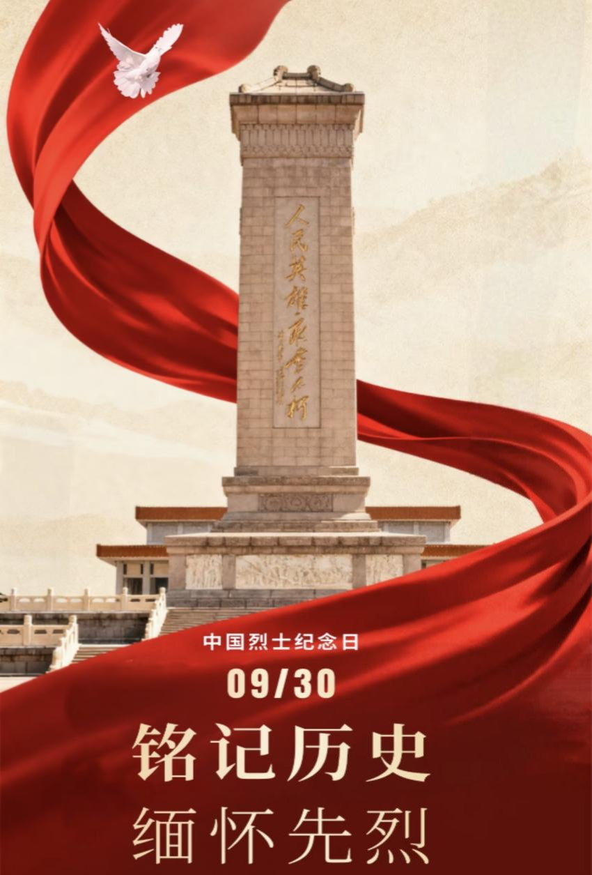 中国烈士纪念日,定于每年的9月30日。这个日期的选择,蕴含着深刻的寓意。次日就是中华人民共和国的国庆日。这体现了“国庆勿忘祭先烈”的庄严内涵,昭示着我们今天欢庆的繁荣盛世,是无数革命先烈用鲜血和生命换来的,在举国欢庆的前夕我们要深深地铭记,先烈抛洒的热血。