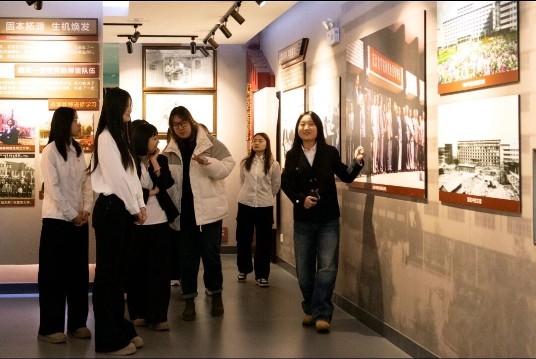 入党宣誓仪式后,新发展党员在校史馆进行学习参观,进一步了解学校的发展脉络和辉煌成就,增强了对学校的认同感、归属感和自豪感。馆内陈列的自建校以来所获的各种荣誉,让学生们深刻认识地感受到了“艰苦奋斗,自强不息”的东农精神和“博学笃行,明德亲民”的东农校训,让新发展党员做到以东农历史培育理想信念,以先辈精神砥砺使命初心。