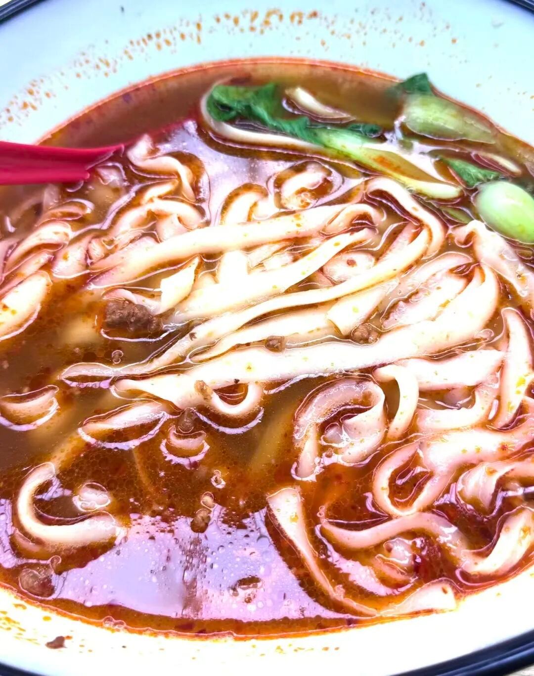 吃面永远是冬季最幸福的时刻,宽面吸饱了鲜香的辣汤,每一口都是口感与味觉的双重满足,热汤暖身,好味入心,是平凡生活里的小幸福。