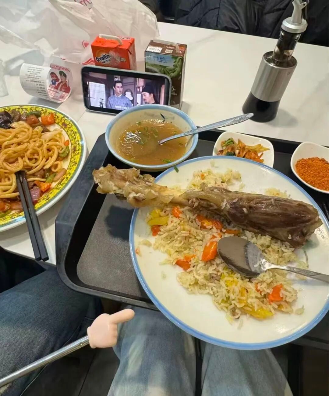 没有复杂摆盘,只有满心欢喜——一碗炒饭压着大肉骨,旁边炒面冒热气,配口汤,这就是平凡日子里的小幸福。不装精致,只图实在——肉骨啃得香,炒饭炒面管够,汤暖乎乎,这样的饭吃进肚子里,比什么都踏实。