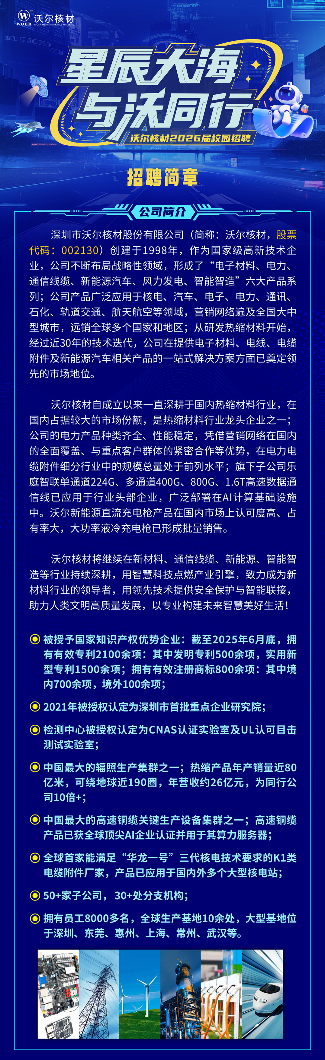 【招聘信息】 沃尔核材股份有限公司2026届校园招聘正式启动
